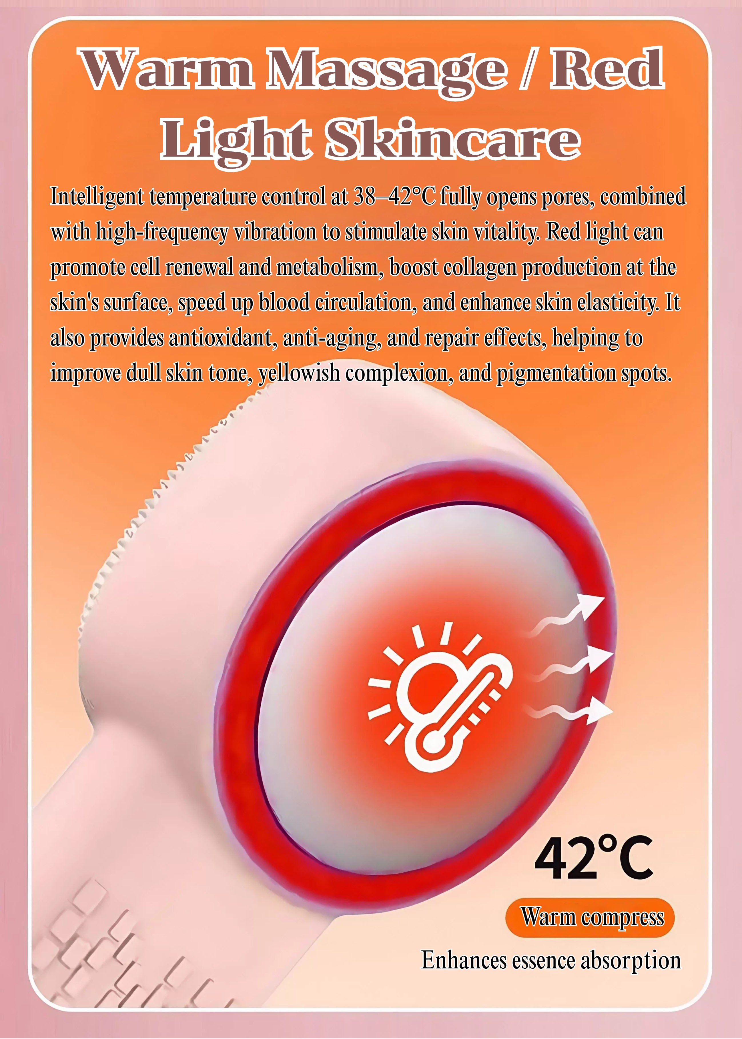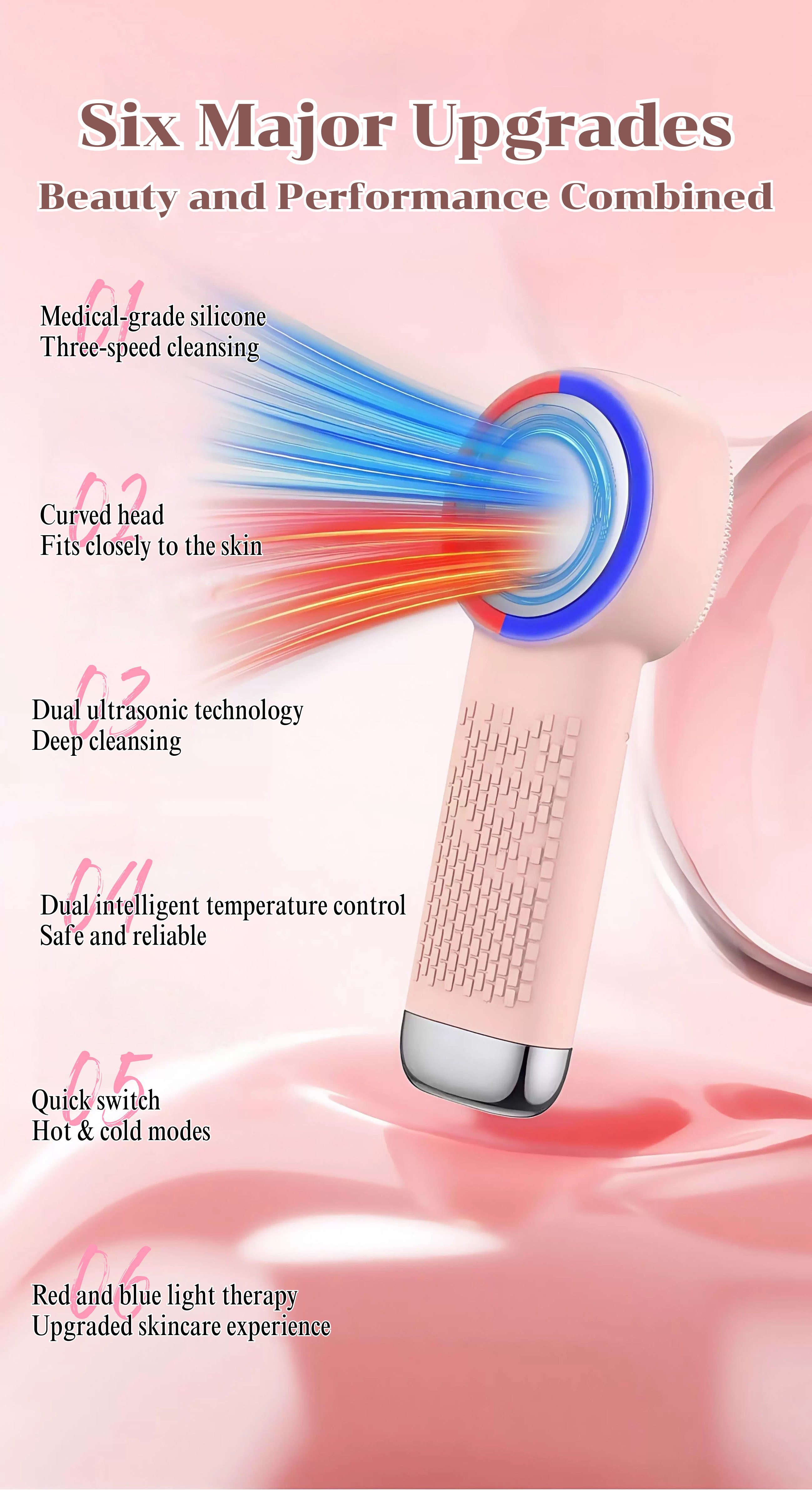 The ultrasonic cleaning mode offers deep pore cleansing, removing dirt, oil, and makeup, while the hot & cold compress function enhances absorption and minimizes puffiness. The red and blue light therapies target collagen production and acne, leaving your skin refreshed and clear.