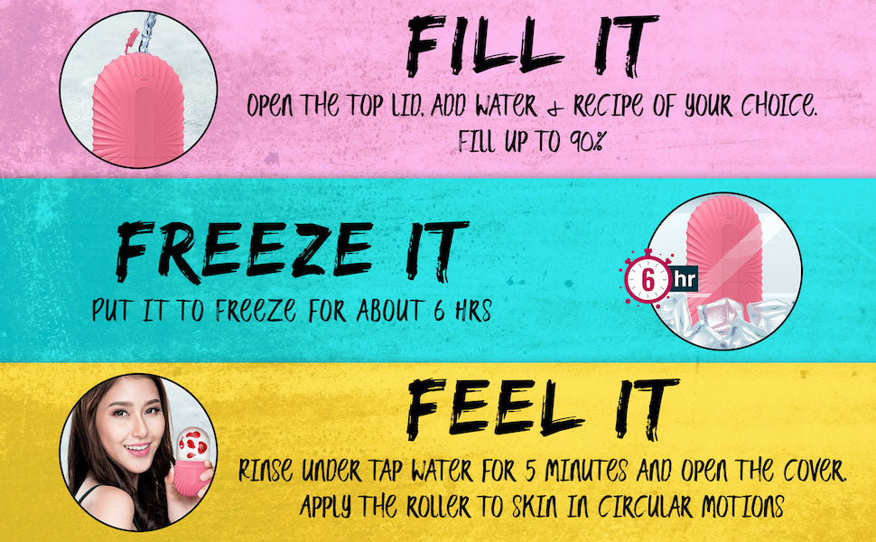 To use, fill the roller with water, freeze it for 3-4 hours, and then apply it gently in circular motions on your face and eyes. The cooling effect will help reduce puffiness, shrink pores, and calm irritated skin.
